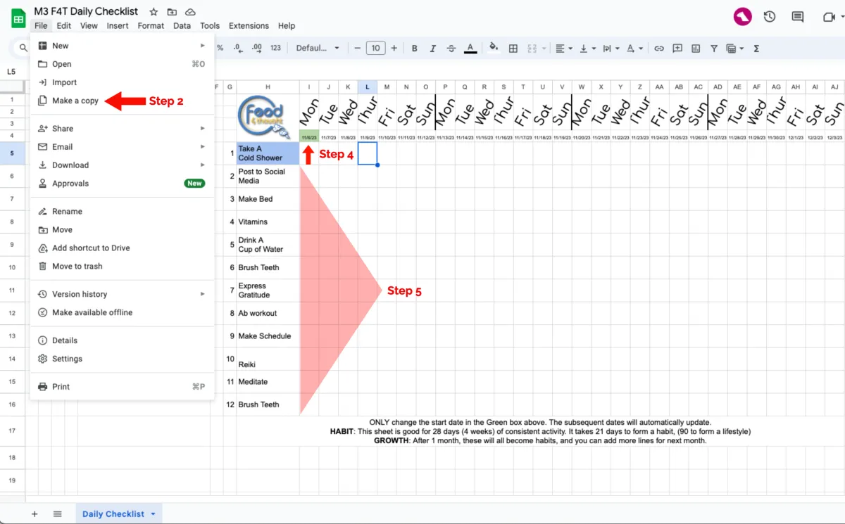 Step 2 - Go to File in the top left corern and click "Make a copy"